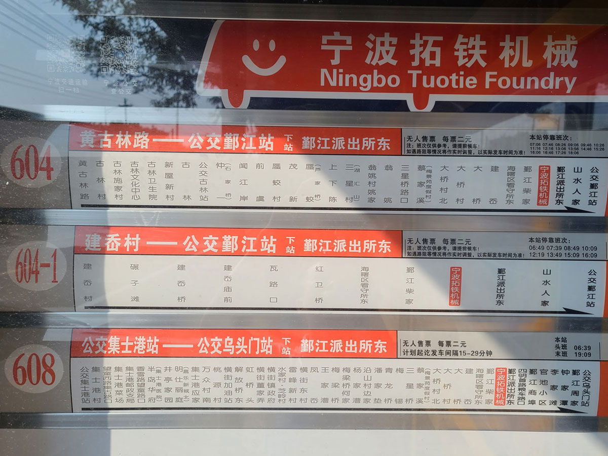 近期,位于宁波市海曙区鄞江镇大桥村的“安博在线注册机械”公交车站投入运营,正式并入3条公交线路:604路、604-1路、608路。这将进一步为安博在线注册广大员工及家属们的日常出行提供便利。